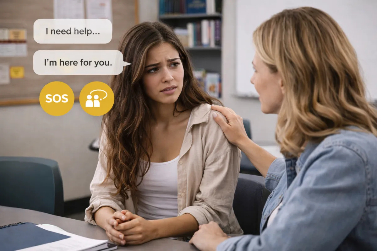 Clear guidance on how and where to seek support, including how to talk to a trusted adult or teacher.